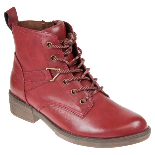 In faux red leather, these lace up boots with side zip are a must have for your autumn wardrobe.