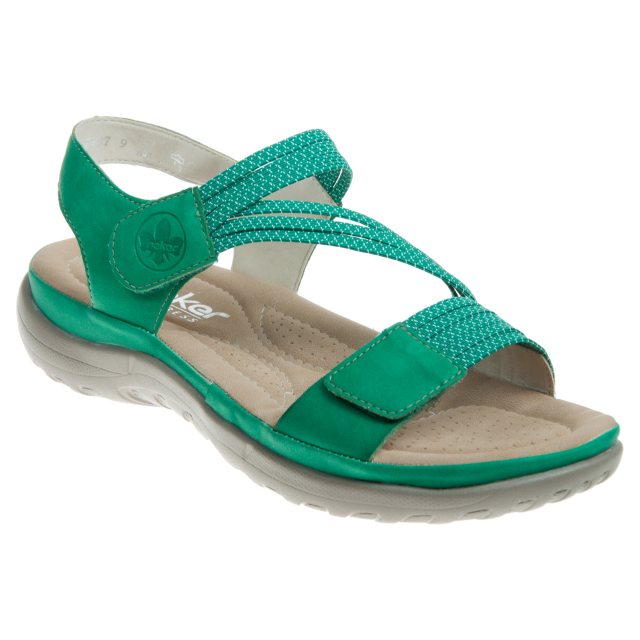 This sensational style from Rieker features elasticated straps for automatic adjustability to your foot. The contoured, cushioned footbed beats fatigue and adds superb comfort underfoot. The sole unit provides flexibility and support with each step.
