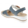 Ladies blue wedge sandals with large decorative buckle and hook and loop fastening straps