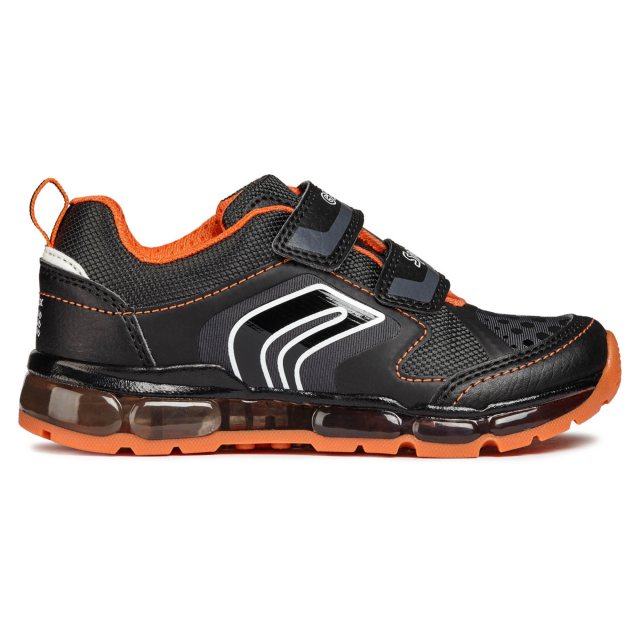 Boy’s breathable sneaker with twinkling lights on the sole. Fun-packed and comfortable, the Jr Android Boy sneakers will get your little boy to spring into action with a series of colourful lights on a transparent sole - the lights can be activated with a handy on-off switch and they become illuminated with each step he takes. With its breathable Geox-patented perforated sole made from lightweight TR for grip and durability. The removable insole contributes to keeping the foot comfortable as well as guaranteeing hygiene and practicality, whilst the double velcro-strap fastening provides easy entry and an adjustable fit.
