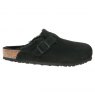 The bolder, the better! This exceptionally cozy version of the Boston clog, a classic BIRKENSTOCK model, is made of real, very high-quality suede. The shearling footbed and strap lining exudes style and keeps feet warm. The perfect shoe for cozy winter evenings by an open fire!