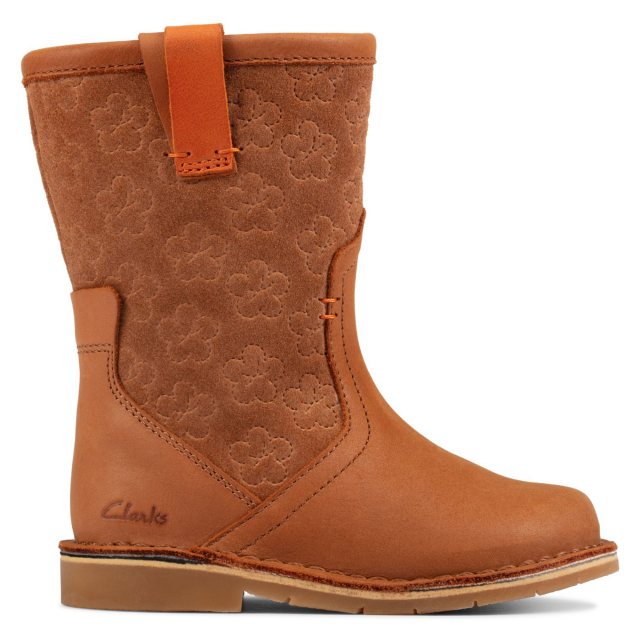 Gorgeous crafted kids boots in tan leather and suede, featuring a stitchdown sole for improved flexibility. The upper pulls on easily and fastens with an inside zip, creating a stylish look with careful detail, such as a touch of veg tan leather at the top. Oozing Clarks DNA, a rubber sole finishes the everyday look. Available in whole and half sizes and different widths.