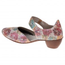 The Dayton mule, a simple, classic design with delicate, embroidered flowers in soft pink and blue. The insole is padded to offer additional comfort.