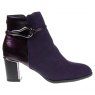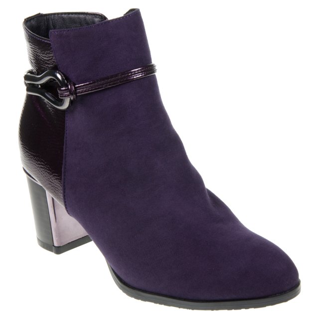 The Lotus women’s Ebony boot is undoubtedly at the epitome of chic! Imi-suede and glossy patent amalgamate on the upper, alongside delicate strap detailing that wraps around the boot and interlinks with polished metal hardware. Accentuating this sleek silhouette further is a mirrored plate and trim that has been encapsulated on the 6.5cm block heel. This exceptionally versatile purple ankle boot is a worthy addition to any wardrobe.