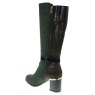 A classic silhouette with a contemporary edge is the Lotus Elsa knee-high boot. Giving this must-have green boot an on-trend finish is the printed back panel and the wraparound patent strap that is enhanced by a chunky interlinking metal hardware. Crafted from imi suede and sitting on a 6.5cm block heel that is subtly accentuated by a mirrored plate and trim, this Lotus women’s knee-high green boot is a wardrobe essential for effortlessly chic styling.