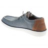 A sharp textile moccasin in a cool blue with subtle brown accents. Incredibly lightweight and flexible, this style has no chance of slowing you down!