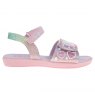 Sparkley rainbow glitter sandals with velcro strap fastening, adorned with a sequin unicorn and beads in the shape of hearts.