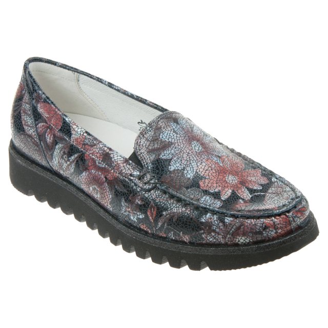 Beautiful leather loafer slip on, with a floral pattern design. As always with Waldlaufer the removeable insoles ensure the perfect fit.