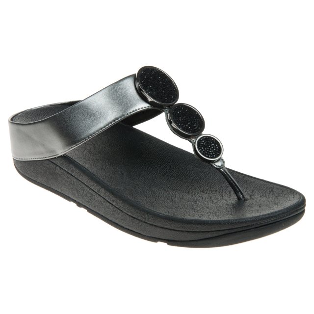 Leave your accessories at home - these metallic sandals are all you need. They dress up any look with a trio of high-octane, glittering discs (that's geometry we like).