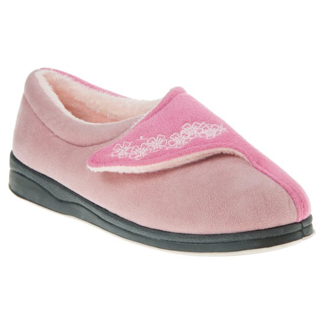Warm and cosy microsuede slippers with a memory foam filled sock on a super soft rubber outsole for unrivalled comfort and support. These slippers come with an easy fastening strap with stitched flower detailing and light vanilla scented outsoles guaranteeing style and comfort in one.