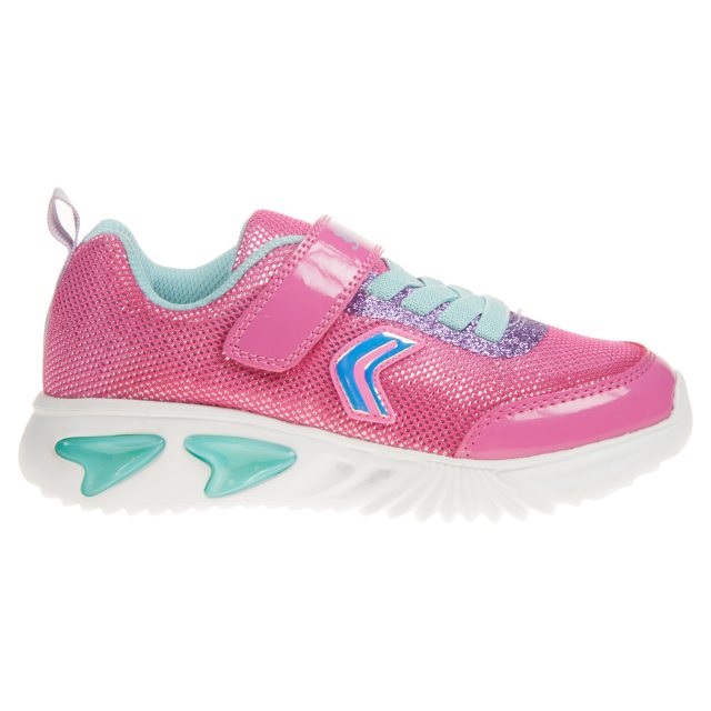 This wonderful flashing sneaker from Geox is a must-have, made from breathable materials that prevent fatigue and featuring fabulous bright pink design and flashing soles.