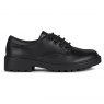Girl's comfortable breathable shoe for schooltime or formal occasions. Crafted from a patent-leather-effect material in an all-black palette, Casey is a formal-looking Derby lace-up with Oxford detailing and an ideal match to school uniform, or the perfect complement to special-event ensembles.