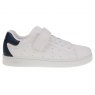 Lightweight breathable low-cut junior sneaker with a tennis-court style and an impeccable casual aesthetic. This navy-blue version of Eclyper features a pared-back sporty-looking upper that will prove to be very easy to match. It has been crafted from a leather-effect material and features elasticated lacing and a riptape closure for a practical comfortable foot entry