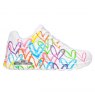 Internationally renowned muralist James Goldcrown brings his iconic #Lovewall heart designs to Skechers in this inspiring collaboration. Show your creative and colorful style with Skechers x JGoldcrown: Skechers Street™ Uno - Highlight Love. This lace-up fashion sneaker features a print of the artist's signature heart design, a synthetic durabuck and perforated trimmed upper, with a Skechers Air-Cooled Memory Foam® insole and a visible Skech-Air® airbag midsole.