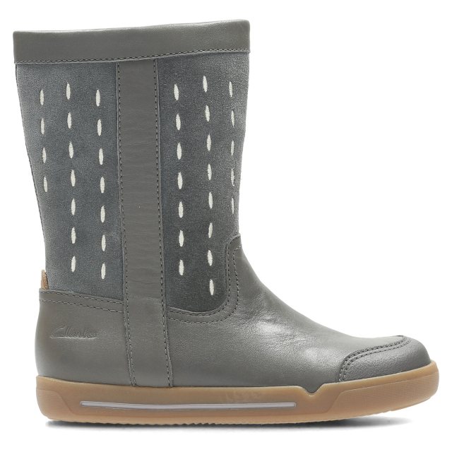 Lilfolk Glo Infant,kids' boots, grey leather - These grey leather calf boots feature embroidered detail for added fun. Simple styling is versatile for casual, everyday wardrobes while the EVA and rubber sole unit keeps these boots lightweight. A zip fastening allows for easy foot entry while Air Spring FX technology and a leather sock work together to provide unbeatable comfort with every step. Available in whole and half sizes and different widths.