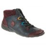 Red and Blue combination zip up ankle boots with adjustable laces.