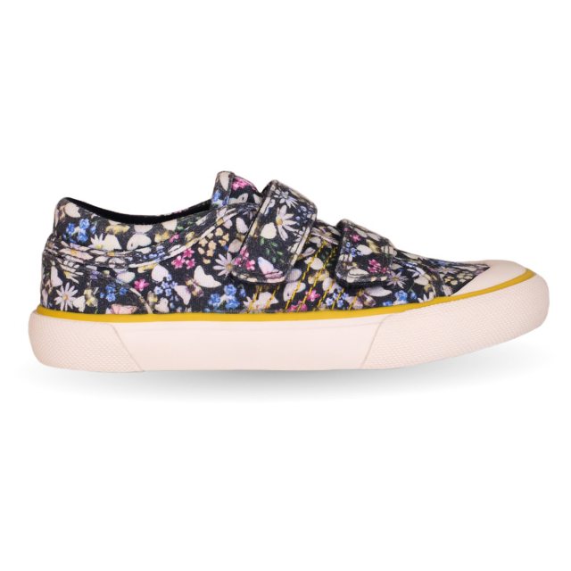 Budding adventurers will love our breathable navy canvas with a hand-drawn floral design. Machine washable at 30 degrees, these breathable canvas will keep little feet comfortable all day long. There's an engineered tread design so kids can play with confidence and a flexible sole with enhanced toe protection.