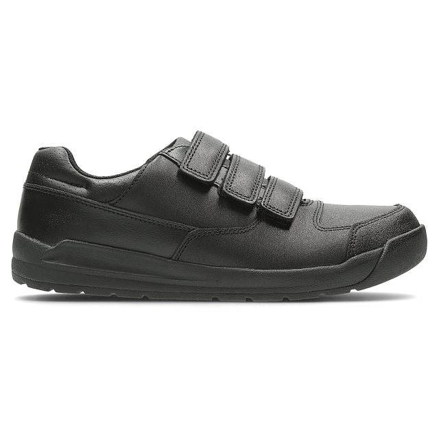 These boys' school shoes take inspiration from the athleisure trend. This smart style uses a triple riptape fastening to secure the foot and a combination of an EVA midsole to keep the shoe lightweight and a rubber outsole for durability. A padded collar and our unique Air Spring FX technology ensures comfort for growing feet, while the high abrasion mud guard is a practical addition. Available in whole and half sizes and a choice of widths.