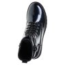 Step into the season with the trendy Parlour navy ankle boot. This biker-style boot features an upper made from sleek faux patent leather, a soft textile lining, and a durable heel. The seven eyelet lace-up with side zip ensures a secure fit, while the padded insole offers all-day comfort. A decorative side buckle adds a stylish touch. Stay ahead of the trends this winter wearing the Parlour.