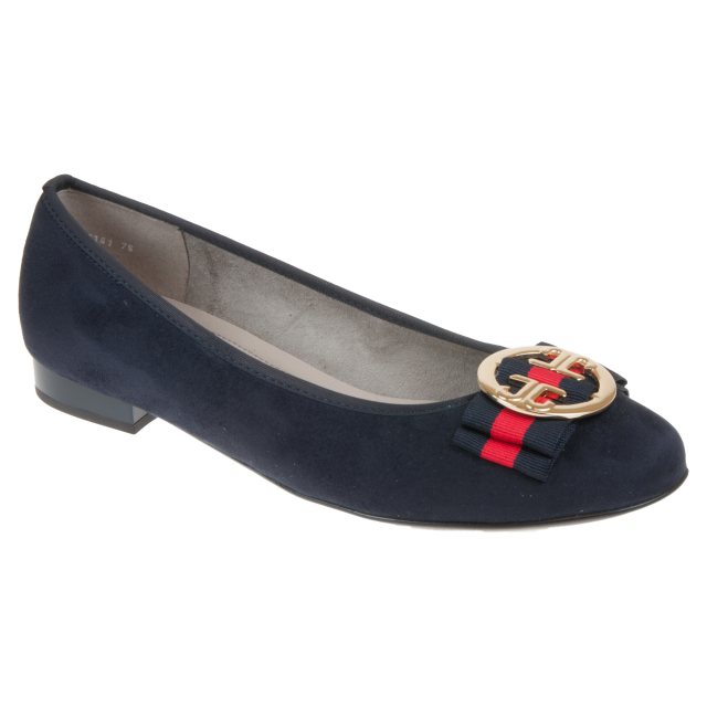 Sophisticated navy pump shoes by Jenny Ara, these flats are adorned with a stylish round buckle. Perfect for work or dressing down with jeans.