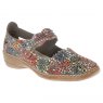 Mary Jane velcro strap style shoes with all the comfort you'd expect from Rieker. They feature a pretty floral pattern.