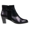 The Sonia ankle boot in Black Glove leather and Etna suede Black leather features a 55 mm heel, velvet lining with short hair fur, and an interior zipper. The buckle and accentuated stitching add a refined touch.