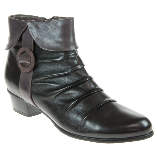 Made with soft glove leather, these gorgeous ankle boots have a ruched effect upper with a side buckle detailing. Inside zip for ease when popping on and off and small black heel for all day comfort.