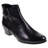The Stefany ankle boot in Black Glove leather features a 30 mm heel, velvet lining with short hair fur, and an interior zipper. It includes a leather cuff, and accentuated stitching.