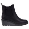 Add wearable height to your winter wardrobe with the Tia black wedge ankle boot. Crafted from faux leather, this boot features a soft textile lining and a comfortable small wedge rubber heel. The side zip and elasticated side panels ensure easy wear, while the padded insole provides all-day comfort. Perfect for any occasion, this chic boot combines fashion and function effortlessly.