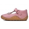 These super soft pre-crawlers are perfect for tiny feet. The T-bar leather upper is combined with a flexible rubber sole and stitched detailing that harks back to Clarks’ DNA. A riptape fastening keeps feet secure, whilst a leather sock ensures freshness. Finished with cute flower detailing that kids and parents alike will love. Available in whole and half sizes and different widths.