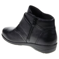There is something special about this stylish ankle boot from Caprice! Featuring stretch panels for automatic adjustability and zip fastening for ease, this style is made with high quality leather and features a unique buckle decoration on the outer ankle.
