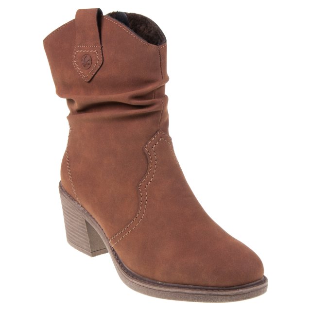This Western style boot features a relaxed look around the shaft for a more comfortable feel and look. This style features a steep heel which ties the look together.